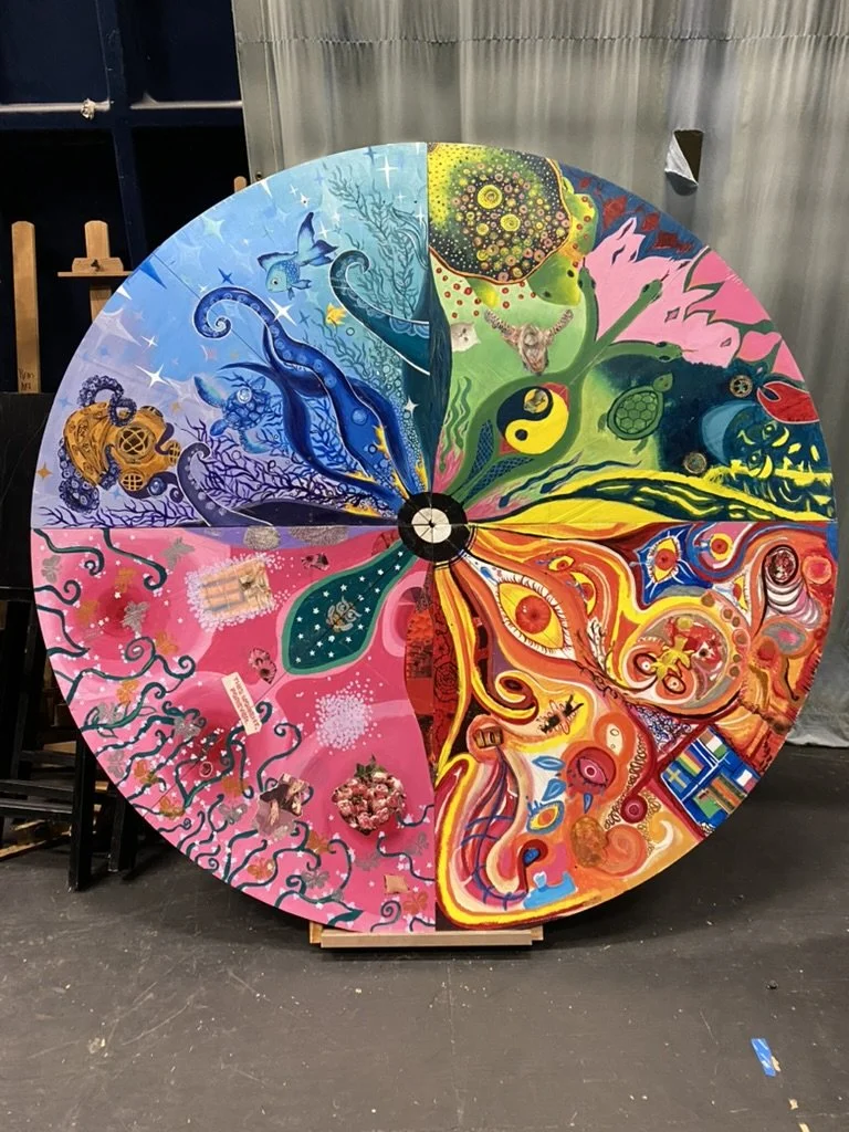 Roaring Fork High School "Freedom of Expression" Collaborative Painting Set Painting for "The Phantom Tollbooth" Sage VOICES Theater Project, "Precious and Endless"